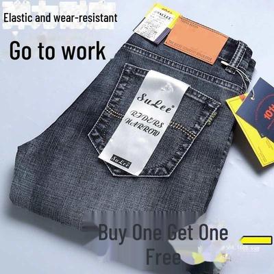 ג'ינס אלסטי לגברים: מכנסי עבודה קז'ואל, ישרים, רפויים, מידה גדולה, עמידים לשחיקה, לאביב/קיץ, עם משלוח חינם