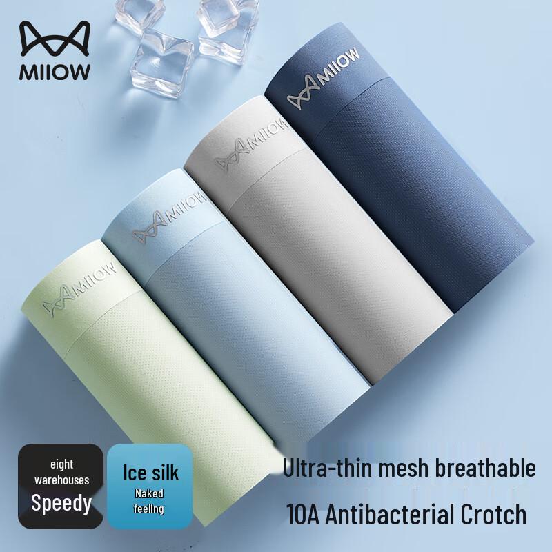MiiOW Men's Ice Silk Mesh Antibacterial Underwear 4-Pack