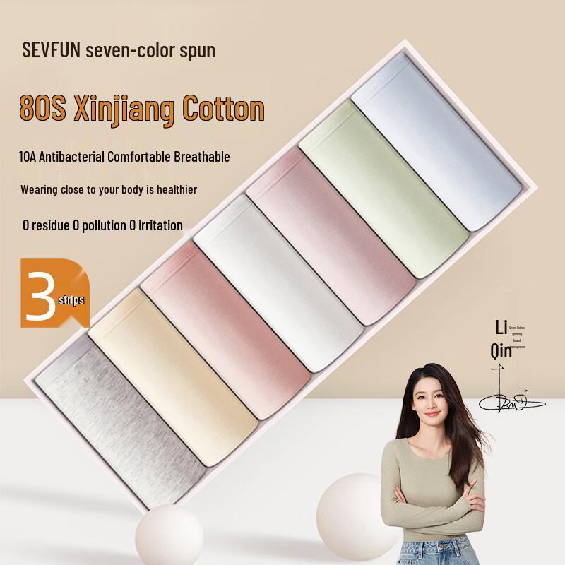 תחתונים כותנה אנטיבקטריאליים ללא תפרים בגזרה בינונית לנשים Qisefang - חבילה של 3