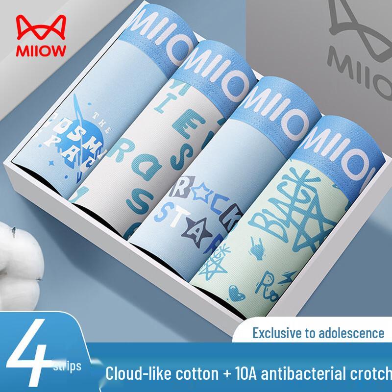 Mao Ren Men's 10A Antibacterial Cotton Boxer Briefs 4-Pack