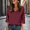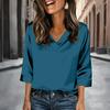 Womens 3/4 Length Sleeves Shirts V-Neck Satin Color Loose Dressy Trendy T-Shirt Pullover Blouse Tops