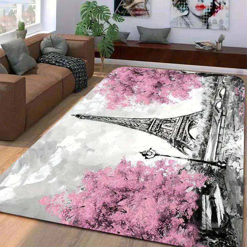 Eiffel Tower Paris Rug for Living Room Area Rug Watercolor Frech Style City of Love Couple Bedroom Doormat Women Non-Slip Carpet