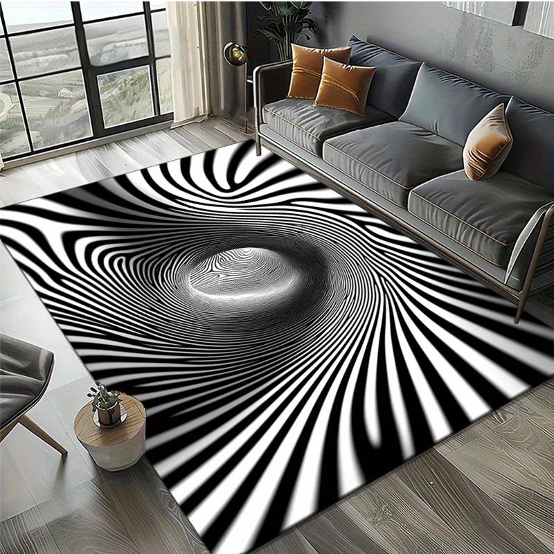 Optical Illusion Rug for Contemporary Living Room - Black White Spiral Design, Large Size Carpet, Modern Art Decor