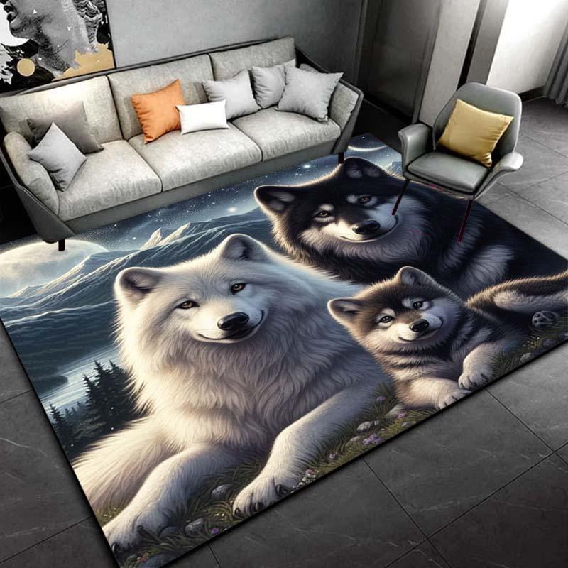 Wolf Family Rug for Nature Enthusiasts | 3D Animal Print Carpet | Wildlife Themed Living Room Decor Skid resistant carpet
