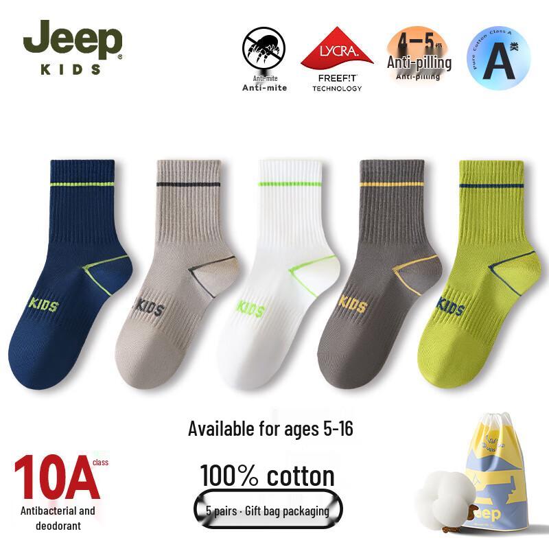 Keep your child's feet warm, dry, and fresh with these Jeep Kids' Thick Cotton Mid-Calf Socks. Made from 100% pure cotton, they feature 10A antibacterial, anti-odor, anti-pilling, and sweat-absorbing properties, making them perfect for sports or daily wear in winter or all seasons. Available for various age groups.