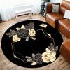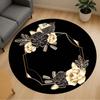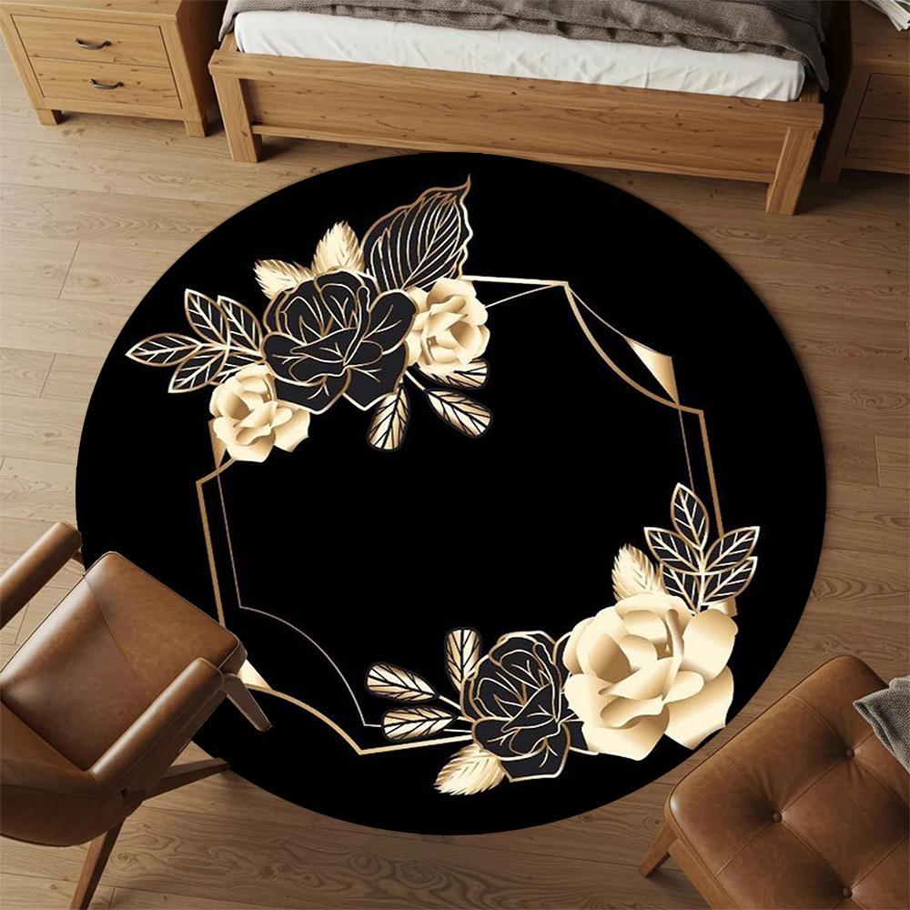 1PC Floral Frame Black and Gold Office Round Area Rug, Under Office Chairs Bedroom Living Room Home Decor,Carpet for Office, -1110282