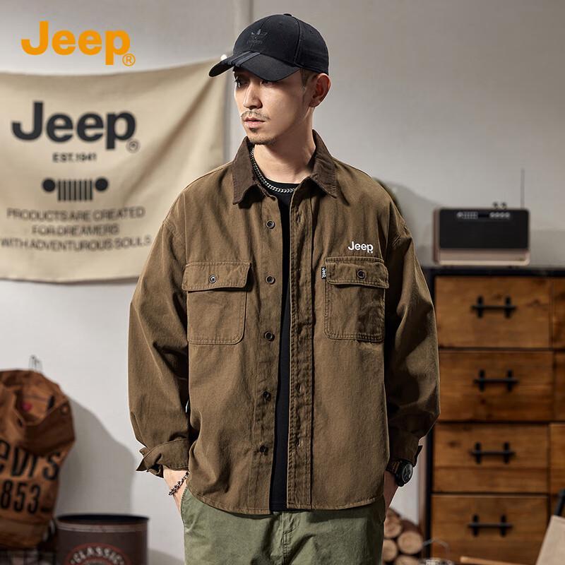 This JEEP men's long-sleeve shirt is crafted from 100% pure cotton, offering comfort and style for the autumn season. Designed with a loose fit and lapel collar, it features a versatile and trendy American casual style, perfect for daily wear or school. The fabric is washed for a soft feel, making it a staple for youth and teenagers.
