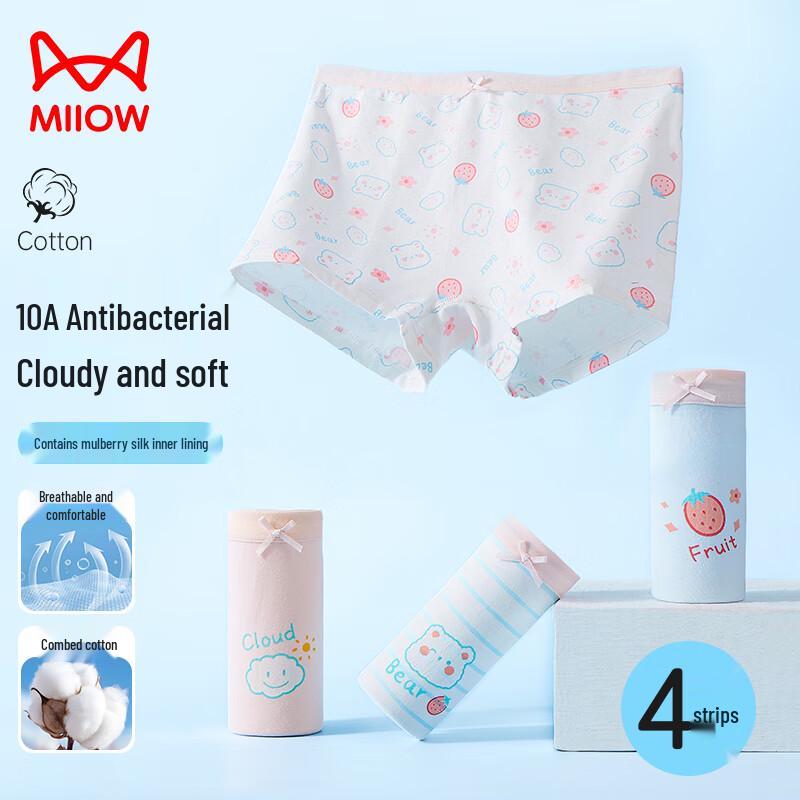MaoRen Girls' 10A Antibacterial Mulberry Silk Cotton Boxer Briefs