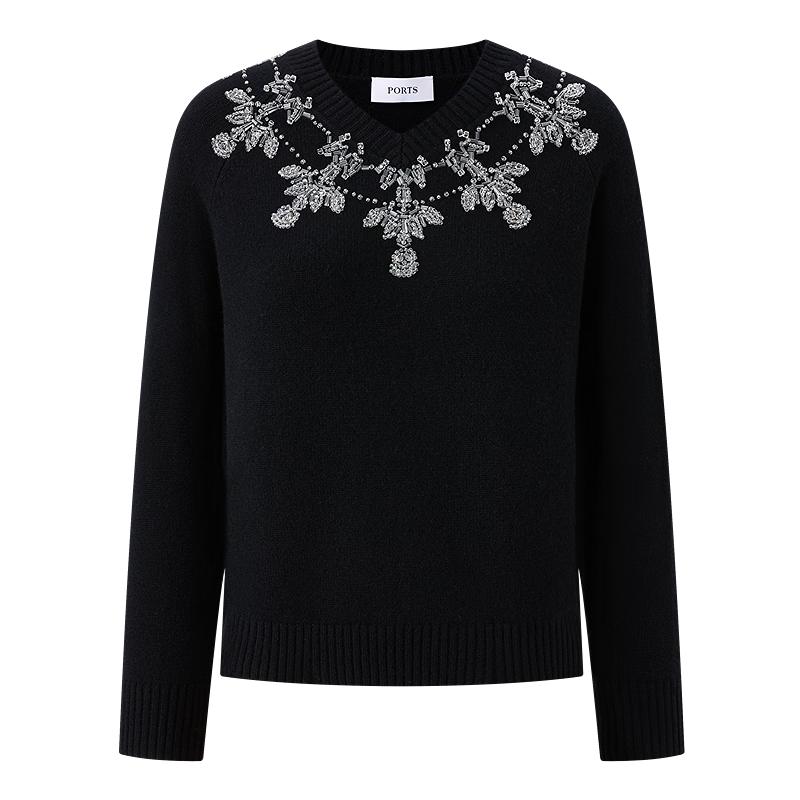 PORTS Women's V-Neck Hollow-out Knit Sweater