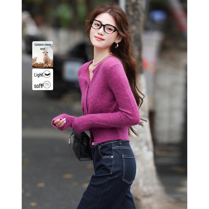 Women's Soft Wool Blend Round Neck Knit Cardigan