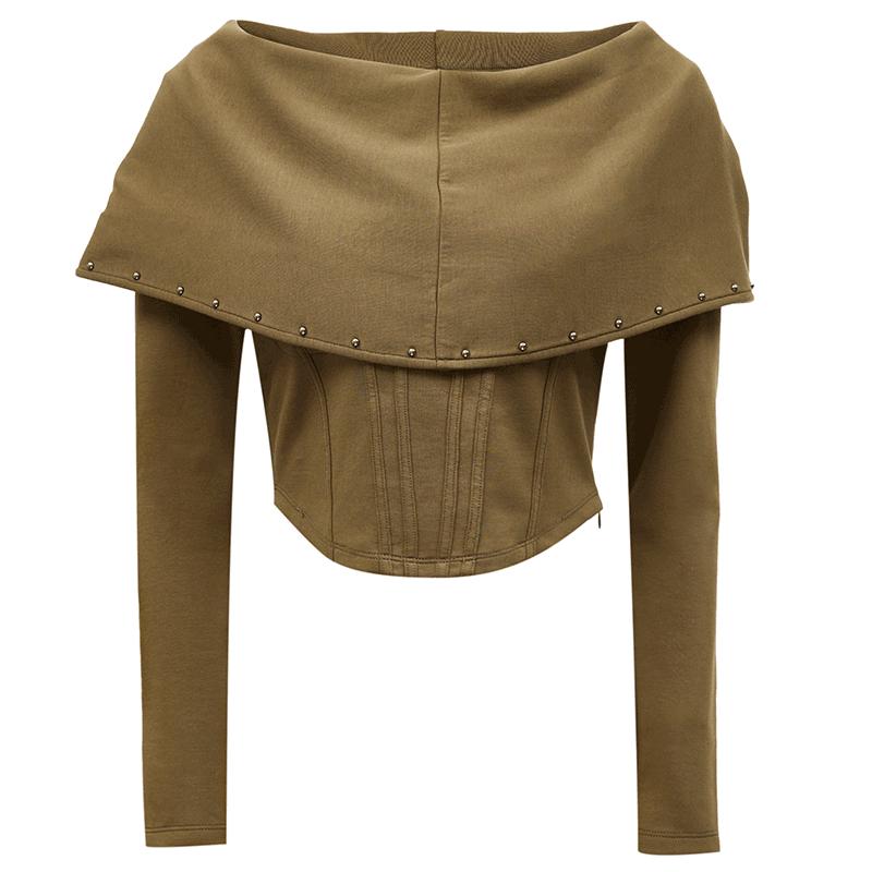 Embrace the 2025 spring new collection with this VEROMODA women's t-shirt. Featuring a unique wasteland style with detachable rivet decorations, this slim-fit, short-length top offers a versatile look. Crafted from a comfortable cotton blend (55% cotton, 38% polyester, 7% spandex) with a stylish one-word collar, perfect for ages 25-29.