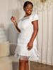 Women's V-Neck Lace Embroidered High-Waist Midi Dress