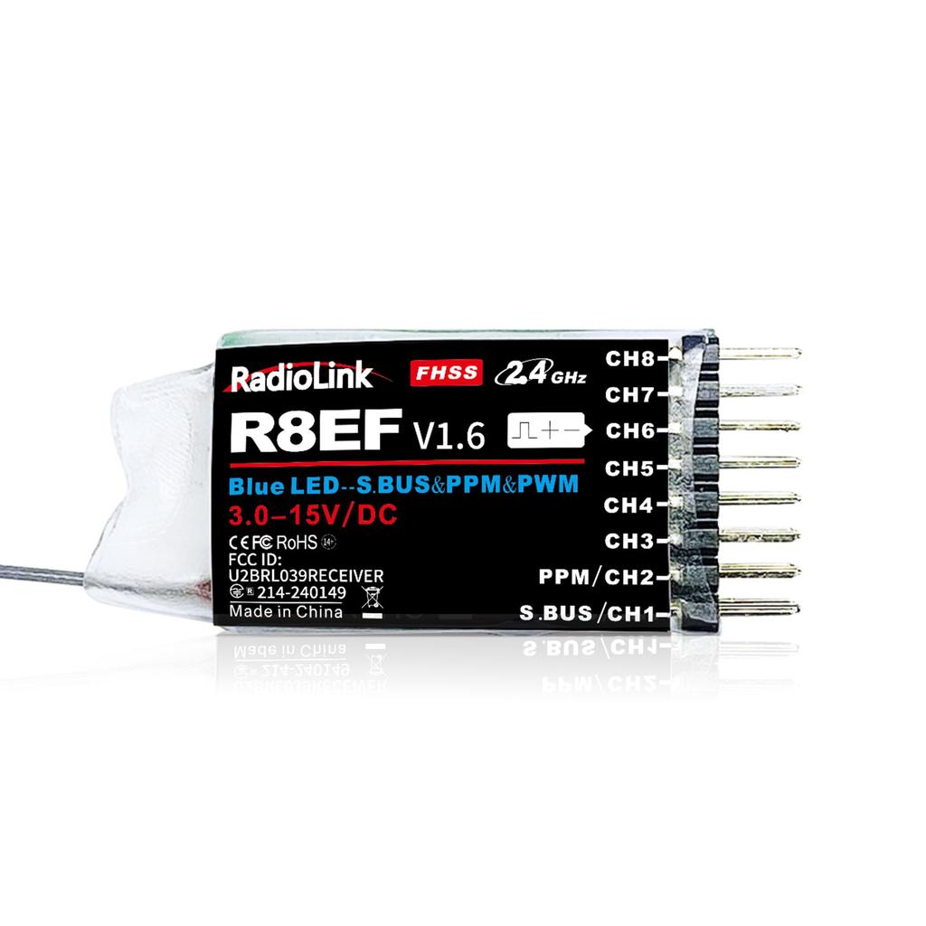 Radiolink R8EF Receiver, 2.4GHz RC 8-Channel SBUSPPMPWM Receiver with Voltage Telemetry and 2000M Long-Range Control for RC Airplanes and Robots,