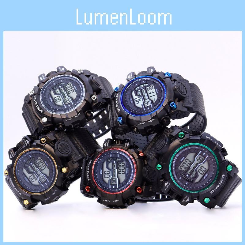 This digital sports watch features a 49mm round resin case with a durable organic glass mirror, supporting water resistance up to 10 meters. Made with a PU strap, it delivers reliable electronic movement and a luminous display for easy reading in low light. Ideal for outdoor activities, it effortlessly complements casual, sport, or school wear. Wipe clean with a damp cloth for maintenance.