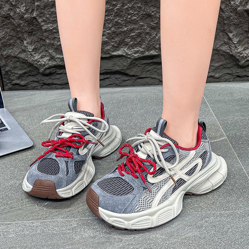 Autumn new matte European non-slip mesh dad shoes thick-soled heightening casual shoes