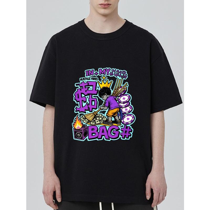 Black T Shirt With In My Bag Money And Character Graphic Print For Streetwear Fashion