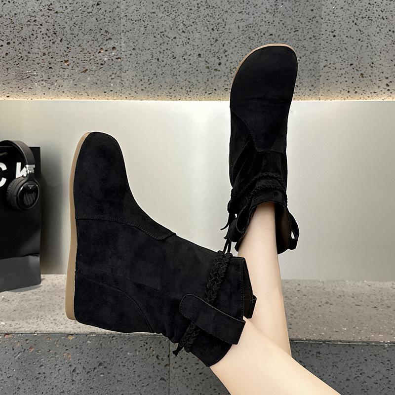 Short boots autumn new retro western boots flat-bottomed stacking boots casual fringed Martin boots