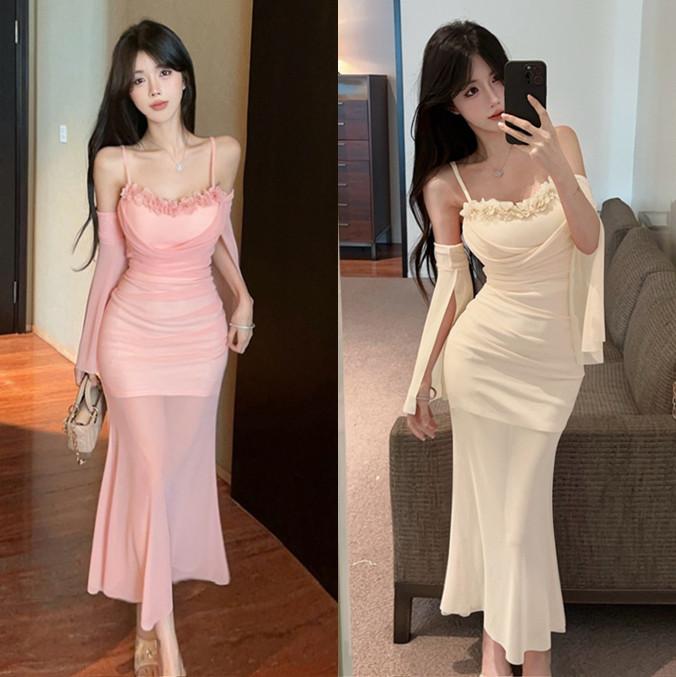 Sexy dress temperament mesh lace tube top fishtail skirt low cut fashion hip sling skirt