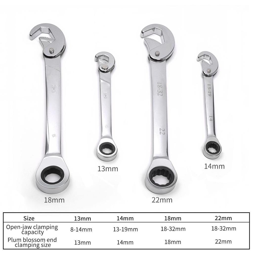 8-14/13-19/18-32mm Universal Adjustable Wrench Double-End 72-Tooth Ratchet Hook Large Opening Spanner Pipe Plumbing Repair Tool