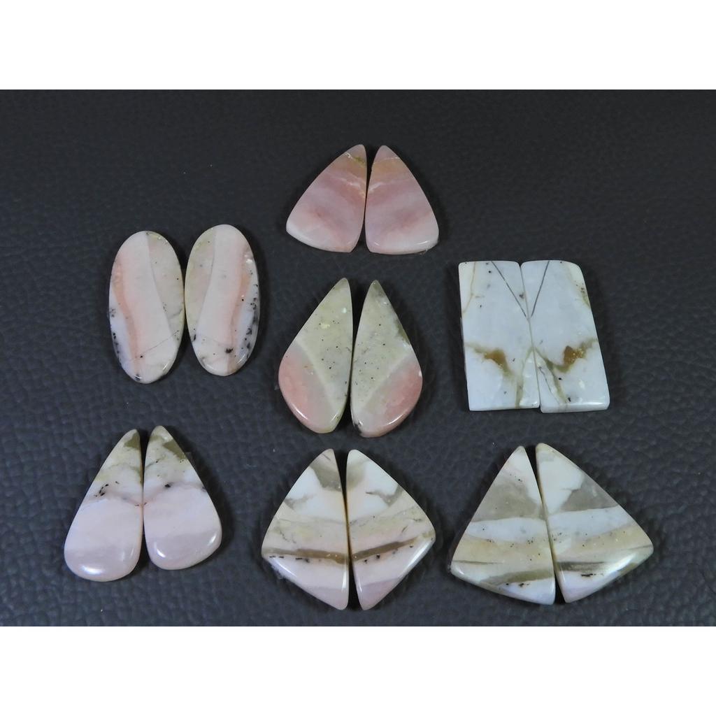 129Cts. Natural Pink Opal Matched Pair Mix Cabochon Gemstone 7Pair Lot C-1399