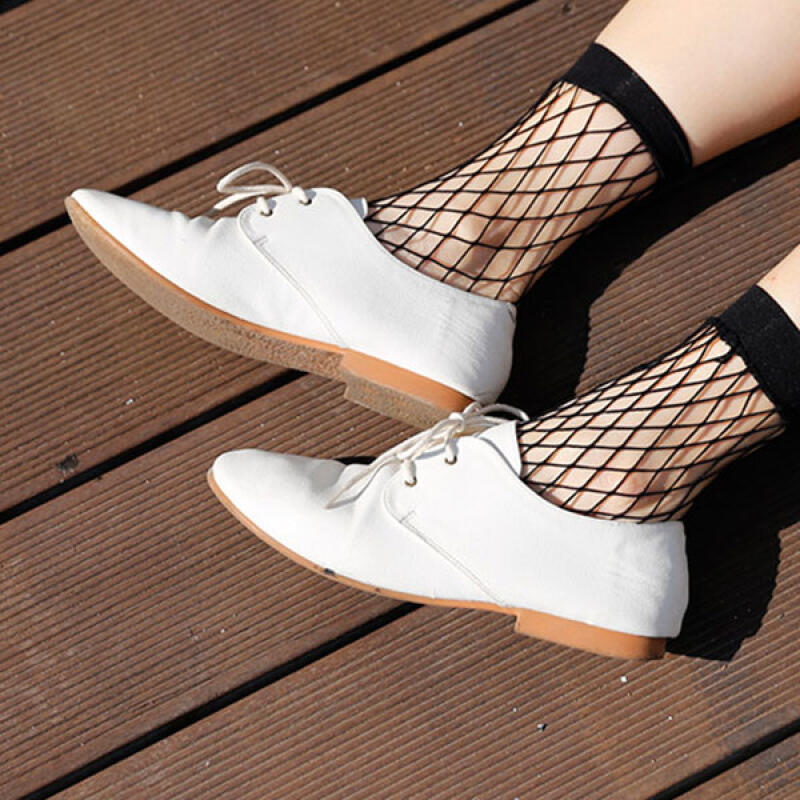 גרביים לבנים פשוטים בסיסיים שקופים עד אמצע השוק