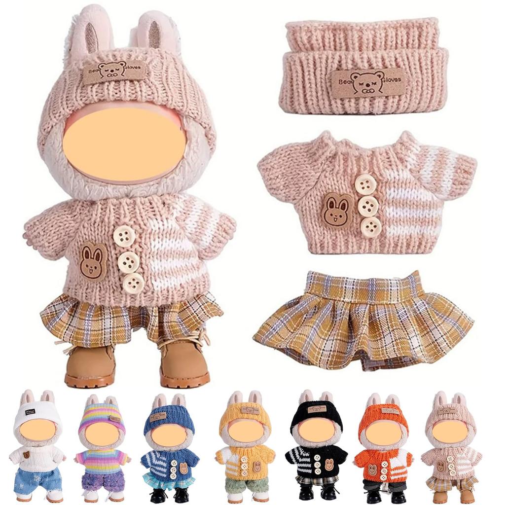 17cm Lovebu Plush Clothes Set (Sweater, Checkered Skirt, Pants, and Hat) - 3-Piece Set for Plush Toys (1st, 2nd, and 3rd Generations) - Cute Doll
