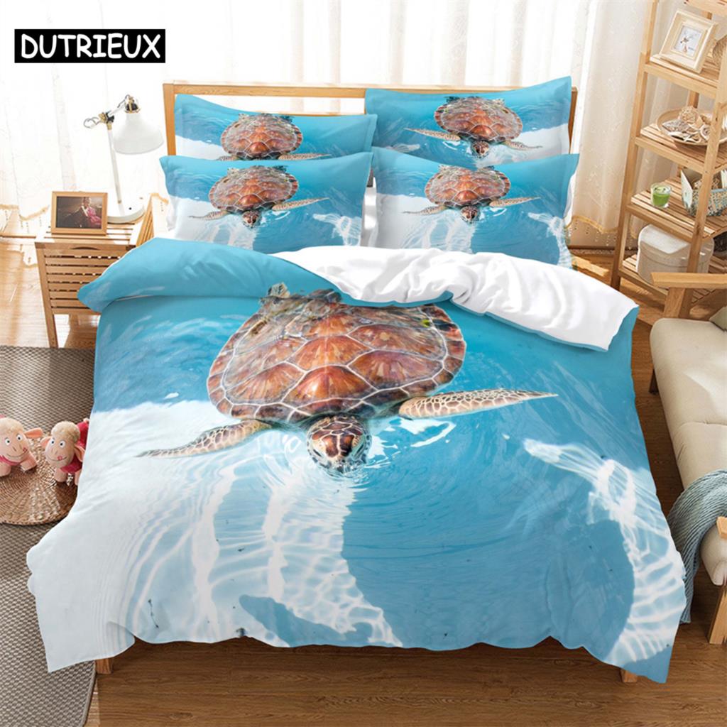 Turtle Bedding 3-piece Digital Printing Cartoon Plain Weave Craft For North America And Europe Bedding Set Queen