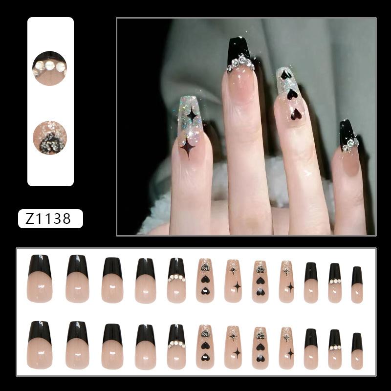 Black sparkling diamond French love star medium and long ballet nail, sweet, cool and fashionable European and American ins style wearing armor 24