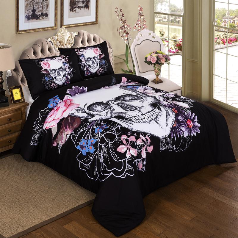 New 3D Skull Bedding Sets Plaid Duvet Covers For King Size Bed Europe Style Sugar Skull Bedding Pink Flower Duvet Cover Bed Set