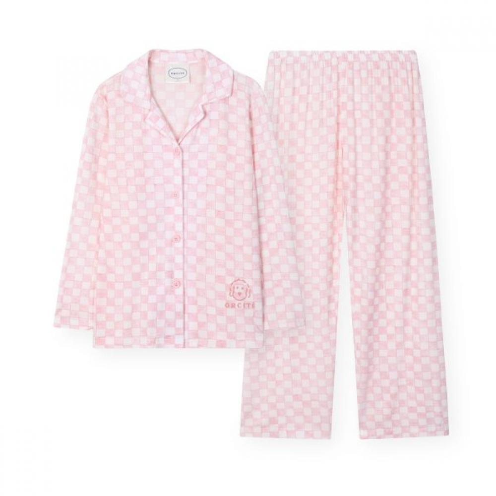 The [Orsite] Women's H205 Mild Border Pink Long Sleeve Pajama Set features a soft pink tone border pattern. The top is designed with long sleeves for optimal warmth in winter, and the bottoms feature a pocket pants style for added practicality. This set consists of one top and one bottom, constructed from soft materials that minimize skin irritation.