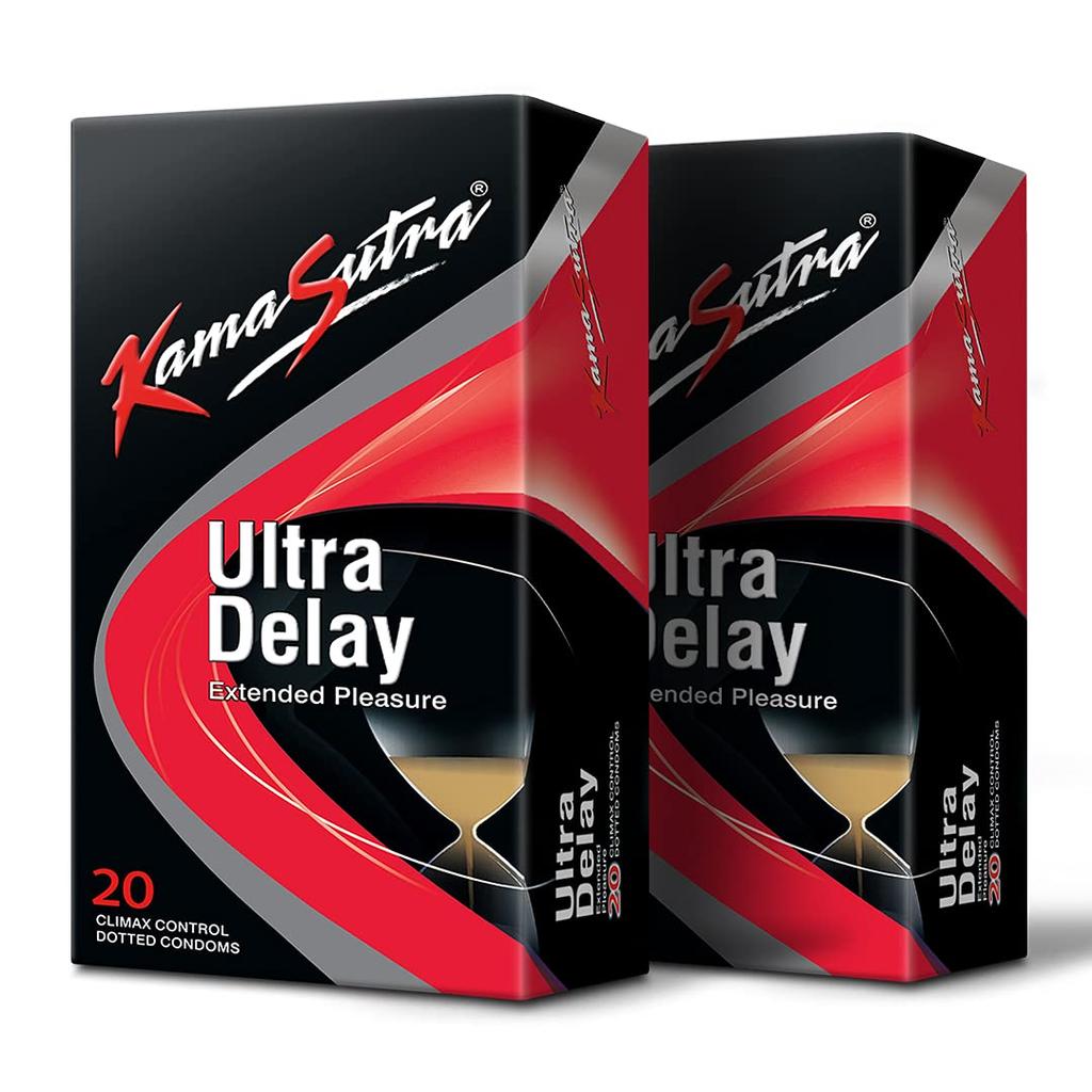 KamaSutra UltraDelay Condoms for Men, Speical Lubricant for LongLasting Performance, Clear, 40 Count, Pack of 2