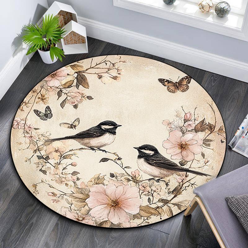 Birds Round Area Rug,Carpet Rug for Living Room Bedroom Sofa Playroom Decor,Non-slip Floor Mat