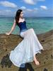 Spice Girl Pure Desire Three-dimensional Flower Blue Neck Dress Seaside Vacation Sexy Mesh Fishtail Dress