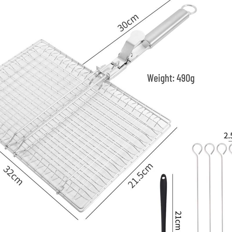 This ZISIZ BBQ grill net set features a convenient detachable handle and is made from thickened stainless steel for durability. Perfect for outdoor grilling, it includes one grill net, an oil brush, and four skewers to complete your BBQ experience.