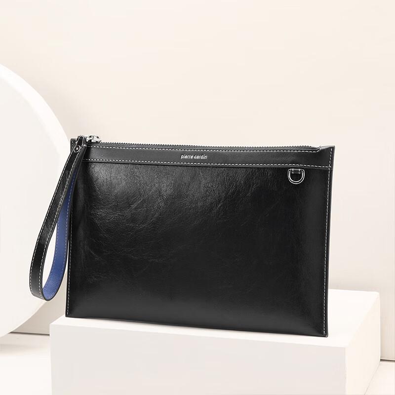 This elegant Pierre Cardin men's clutch bag is crafted from premium top-grain cowhide, featuring a secure zipper closure for your essentials.
