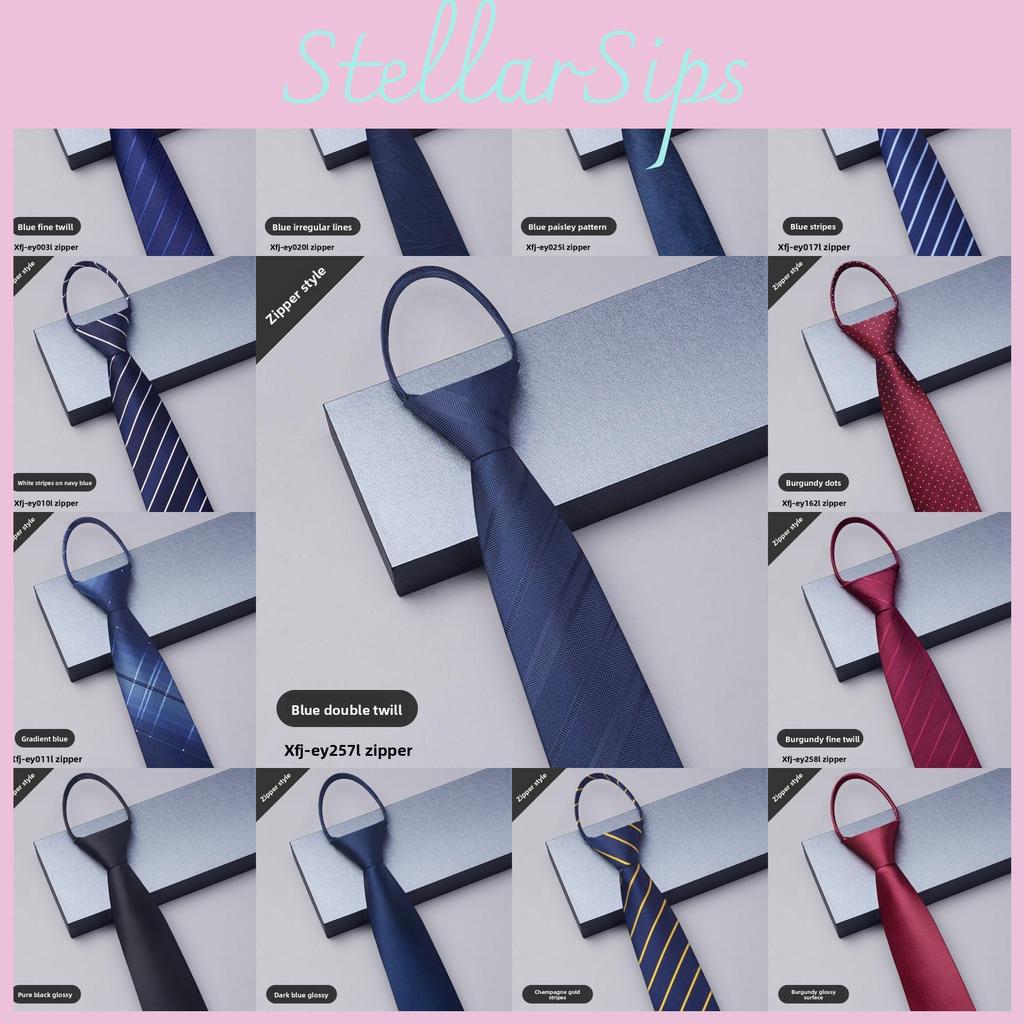 This tie features a zipper design for easy wear and removal, supporting quick adjustments for a polished look. Made of high-quality silk, with a smooth, glossy finish. Suitable for formal occasions like weddings or business meetings, it enhances a range of suit styles. Easy to maintain, wipe clean with a damp cloth for long-lasting elegance.