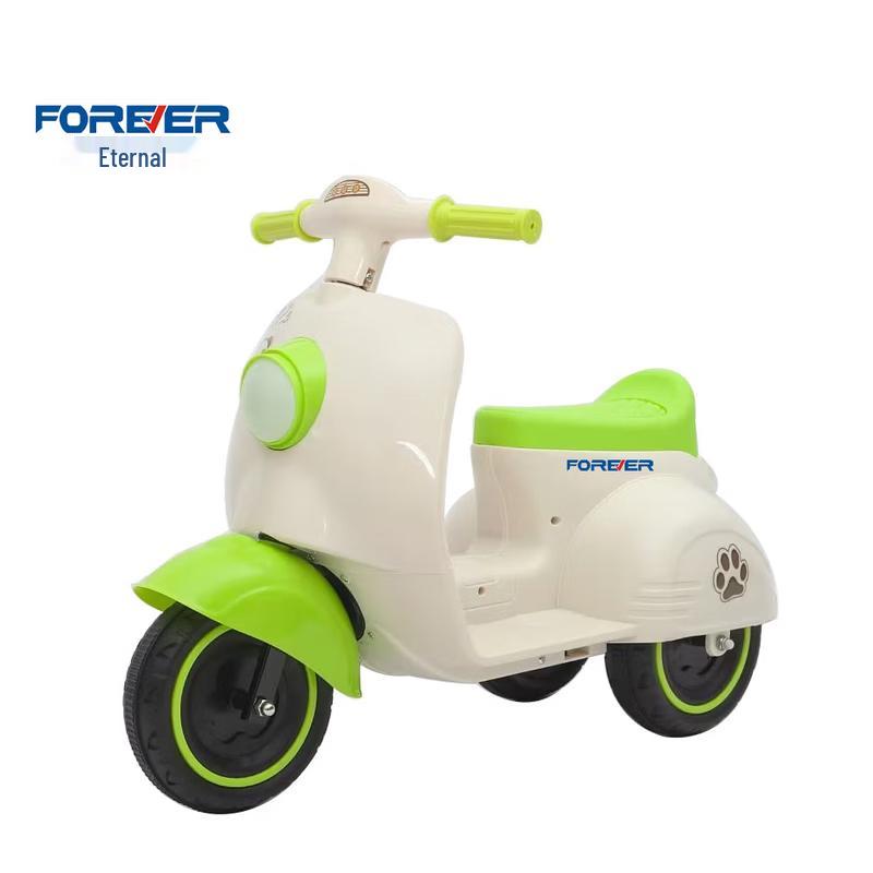 Experience outdoor fun with the Forever HMG-229 Kids Electric Ride-On Tricycle. Designed with a stylish appearance, this durable tricycle features a high-carbon steel frame, a comfortable soft-tail design, straight handlebars, and sturdy spoke wheels, ensuring a safe and enjoyable ride for young children. It is not foldable.