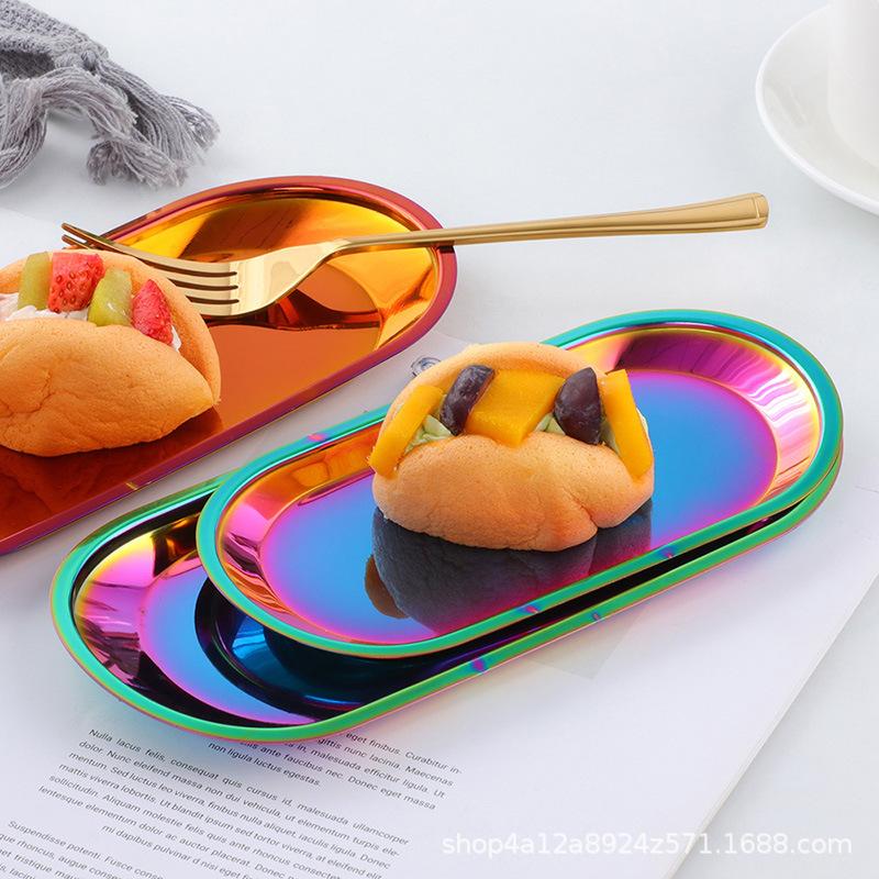 Stainless steel square steel plate, hotel restaurant, Dim sum plate, jewelry plate, ellipse, multi-purpose storage plate, towel plate