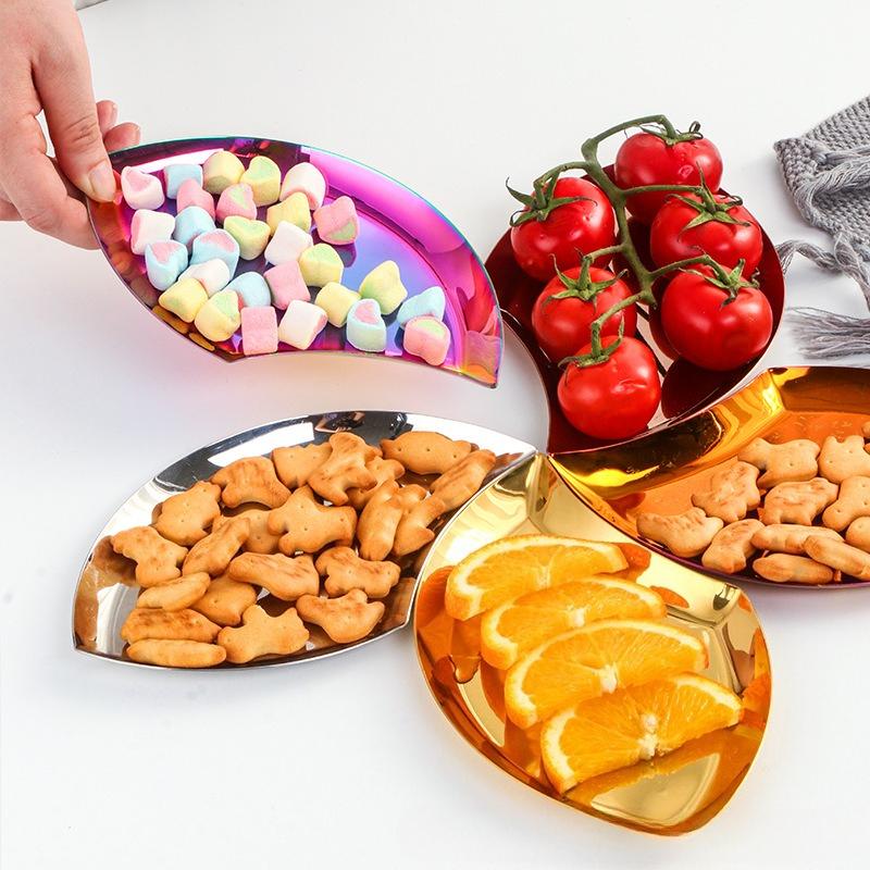 Creative metal jewelry ring plate, stainless steel, leaf shaped, fruit, dried fruit, storage plate, afternoon tea plate