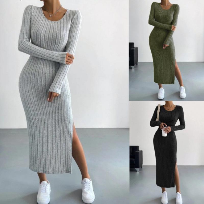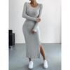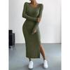 Discover the elegance and comfort of our long-sleeved round neck slit knit dress, designed for the 2025 Autumn/Winter season. Crafted with premium polyester, this dress offers a soft, breathable texture while ensuring durability. The sleek design features a classic round neckline and a stylish slit, perfect for both casual and semi-formal occasions. Whether you're dressing up for a night out or keeping it cozy during the day, this versatile dress promises a chic and effortless look.