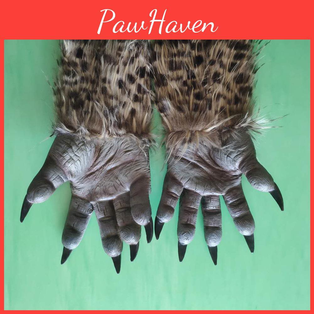 Plush Wolf Claw Latex Gloves For Horror Movie Role Play And Festival Dress Up