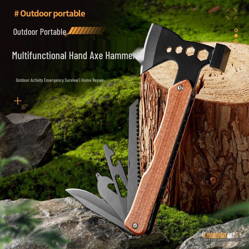This Bayou outdoor multi-functional tool is designed for camping and outdoor activities. It features an axe for chopping and a hammer for driving tent pegs into the ground, all in a portable design. Ideal for various outdoor tasks.