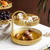 Double Layer Pastry Tray Decorative Copper Gold Biscuits Dessert Display Plate for Wedding Double Layer Pastry Tray Pastry Tray