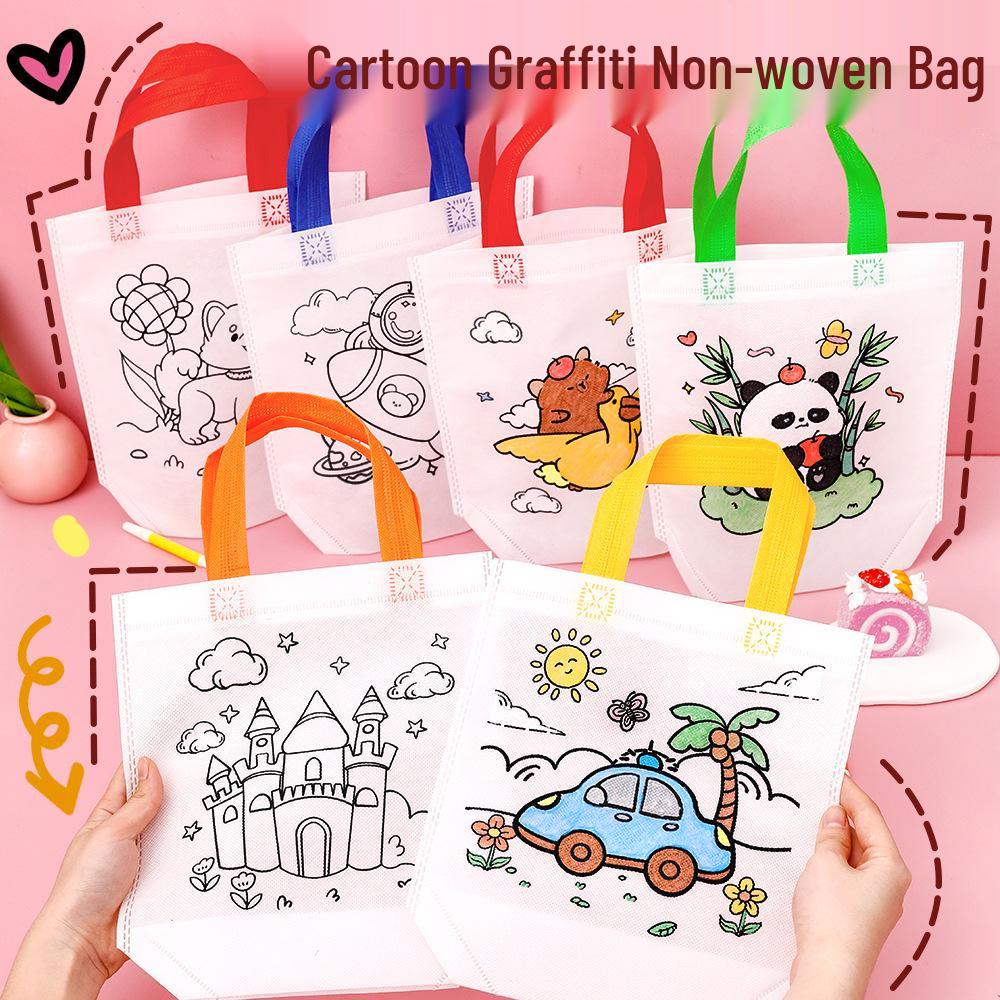 Kids' DIY Cartoon Doodle Tote Bag - Educational Non-Woven Craft Gift