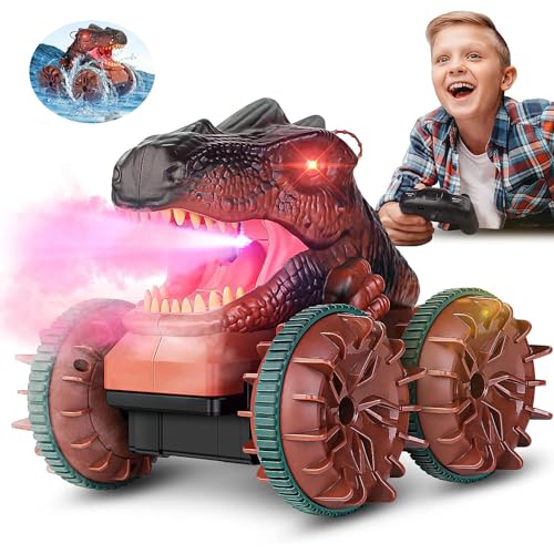 ROBOT PLAZA Dinosaur RC Car, Amphibious, Smoke-Speeding, Spraying Function, 4-Wheel Drive, Kids Toy, Birthday Gift for Boys and Elementary School Stud