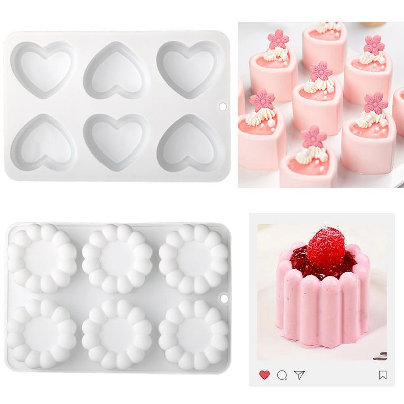 4-Cavity Silicone Mousse Mold with 3D Heart Star round Square Flower Shapes for DIY Dessert Chocolate Cake Decorating Bakeware
