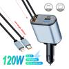 120W Super Fast Charging 4 IN 1 Retractable Car Charger USB C Cable For IPhone Huawei Samsung Cigarette Lighter Adapter PD QC3.0