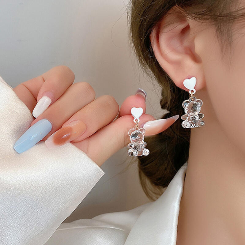 Basom Cute Teddy Bear Transparent Heart Drop Fashion Earrings
