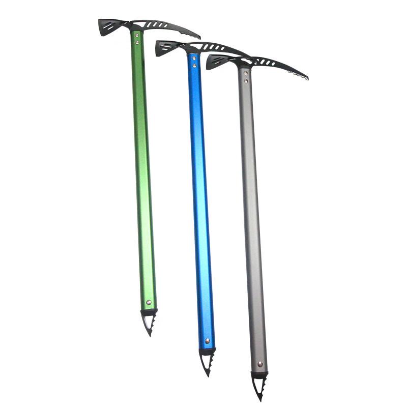 Durable aluminum alloy ice axe designed for mountaineering, rock climbing, and ice climbing activities. Provides reliable support and leverage in challenging icy and snowy conditions.