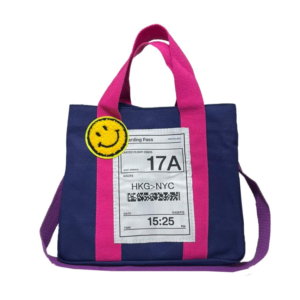 DIVA Rose Smile Tote Bag, Canvas, 2-Way, Crossbody, Shoulder, Cotton, Lunch Bag, Large Capacity, Lightweight, Diaper Bag (Navy)